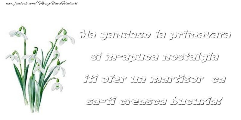 Ma gandesc la primavara Si m-apuca nostalgia Iti ofer un martisor Ca sa-ti creasca bucuria!