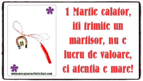 1 Martie calator, iti trimite un martisor, nu e lucru de valoare, ci atentia e mare!