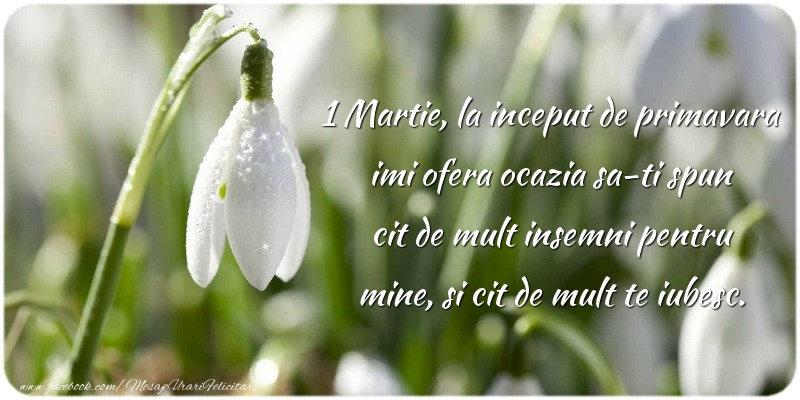 1 Martie, la inceput de primavara imi ofera ocazia sa-ti spun cit de mult insemni pentru mine, si cit de mult te iubesc.