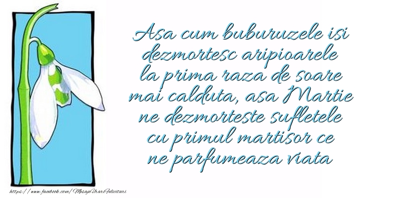 Asa cum buburuzele isi dezmortesc aripioarele la prima raza de soare mai calduta, asa Martie ne dezmorteste sufletele cu primul martisor ce ne parfumeaza viata - primavara.
