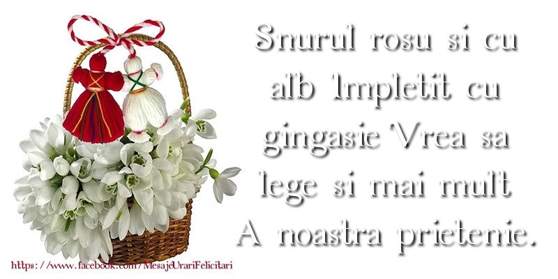 Snurul rosu si cu alb Impletit cu gingasie Vrea sa lege si mai mult A noastra prietenie.