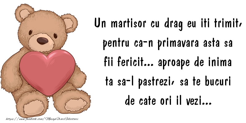 Un martisor cu drag eu iti trimit, pentru ca-n primavara asta sa fii fericit... aproape de inima ta sa-l pastrezi, sa te bucuri de cate ori il vezi...