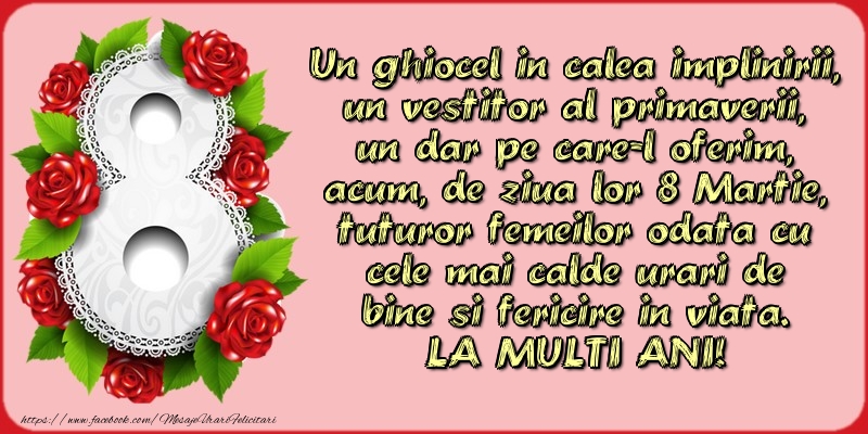 Un ghiocel in calea implinirii, un vestitor al primaverii, un dar pe care-l oferim, acum, de ziua lor 8 Martie, tuturor femeilor odata cu cele mai calde urari de bine si fericire in viata. LA MULTI ANI!