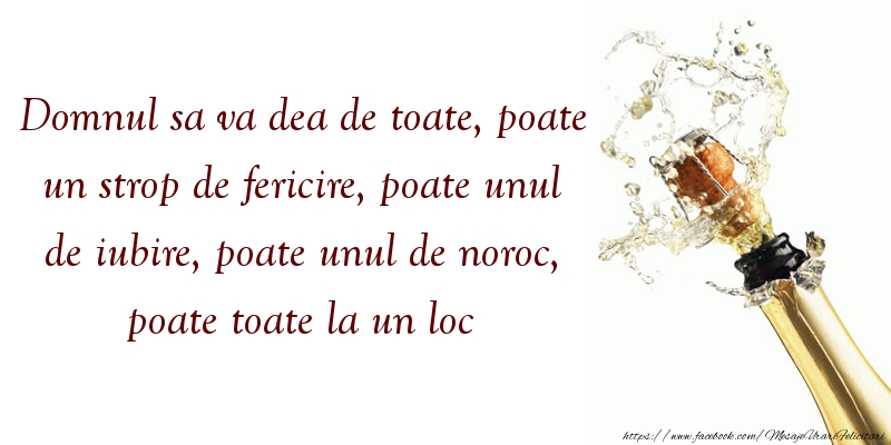 Domnul sa va dea de toate, poate un strop de fericire, poate unul de iubire, poate unul de noroc, poate toate la un loc