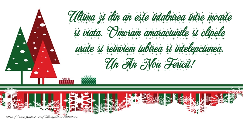 Ultima zi din an este intalnirea intre moarte si viata. Omoram amaraciunile si clipele urate si reinviem iubirea si intelepciunea. Un An Nou Fericit!
