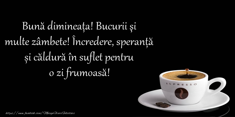 Bună dimineața! Bucurii şi multe zâmbete! Încredere, speranță și căldură în suflet pentru o zi frumoasă!