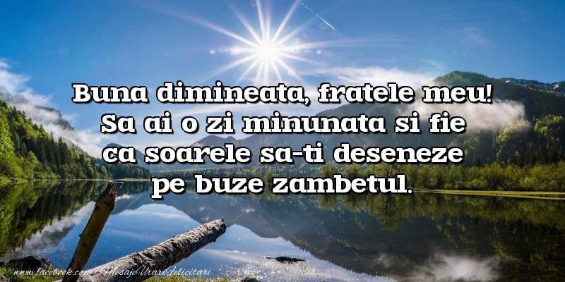 Buna dimineata, fratele meu! Sa ai o zi minunata si fie ca soarele sa-ti deseneze pe buze zambetul.