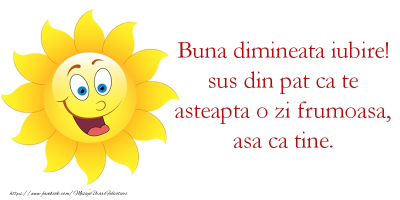 Buna dimineata iubire! sus din pat ca te asteapta o zi frumoasa, asa ca tine.