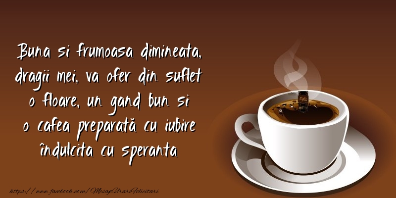 Buna si frumoasa dimineata, dragii mei, va ofer din suflet o floare, un gand bun si o cafea preparată cu iubire îndulcita cu speranta