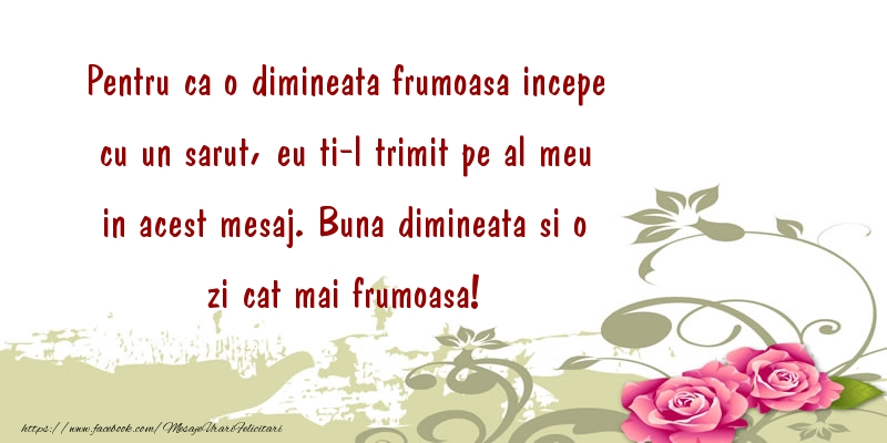 Pentru ca o dimineata frumoasa incepe cu un sarut, eu ti-l trimit pe al meu in acest mesaj. Buna dimineata si o zi cat mai frumoasa!
