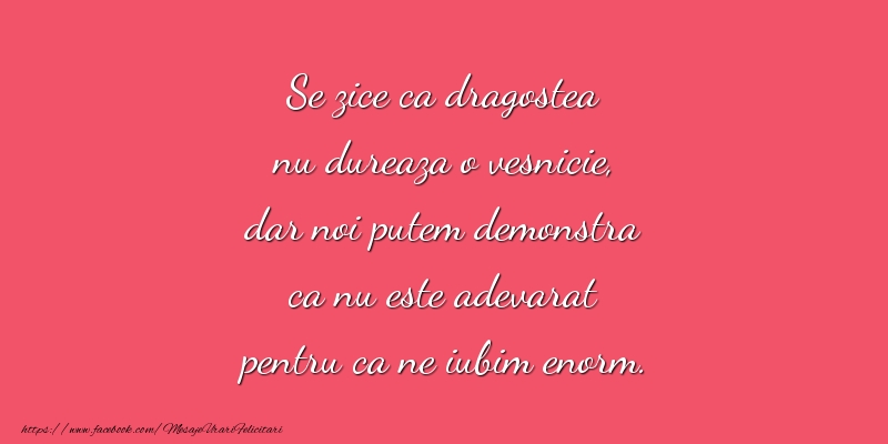 Se zice ca dragostea nu dureaza o vesnicie, dar noi putem demonstra ca nu este adevarat pentru ca ne iubim enorm. Buna dimineata iubire!