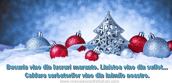 Bucuria vine din lucruri marunte. Linistea vine din suflet... Caldura sarbatorilor vine din inimile noastre.