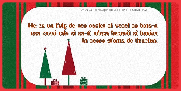 Fie ca un fulg de nea razlet si vesel sa bata-n usa casei tale si sa-ti aduca bucurii si lumina in seara sfanta de Craciun.