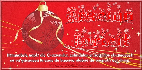 Minunatele nopti ale Craciunului, colindelor si datinilor stramosesti sa va gaseasca la ceas de bucurie alaturi de oaspetii cei dragi. Va doresc tot binele, gandurile bune si curate sa va insoteasca pretutindeni, fericirea si succesul sa va fie mereu alaturi!