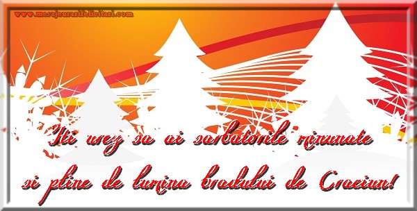 Din cer curgea neaua minunata si cumpana din ani se apropie cu pasi repezi, de la un an la altul, moment in care iti etalezi visele in cartea nescrisa a sperantelor. Iti urez sa ai sarbatorile minunate si pline de lumina bradului de Craciun!