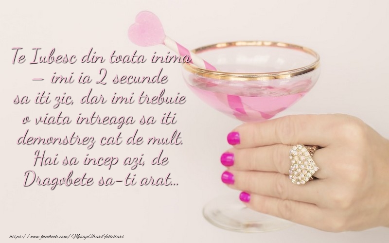 Te Iubesc din toata inima – imi ia 2 secunde sa iti zic, dar imi trebuie o viata intreaga sa iti demonstrez cat de mult. Hai sa incep azi, de Dragobete sa-ti arat…