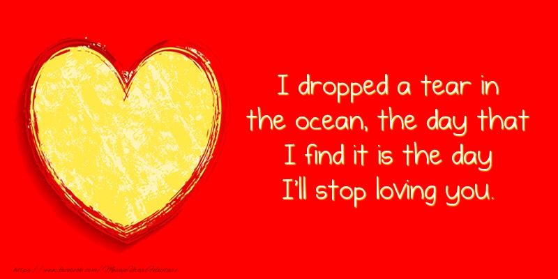 I dropped a tear in the ocean, the day that I find it is the day I'll stop loving you.