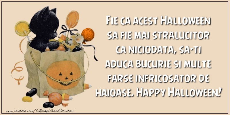 Fie ca acest Halloween sa fie mai stralucitor ca niciodata, sa-ti aduca bucurie si multe farse infricosator de haioase. Happy Halloween!