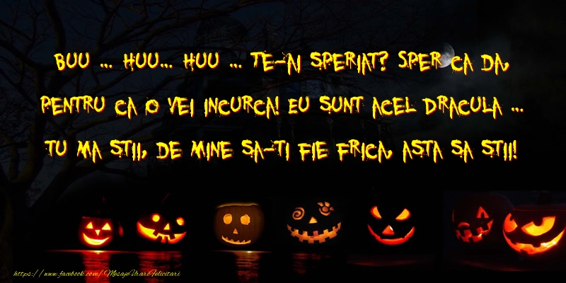 Buu … Huu… Huu … Te-ai speriat? Sper ca da, pentru ca o vei incurca! Eu sunt acel Dracula … tu ma stii, de mine sa-ti fie frica, asta sa stii!