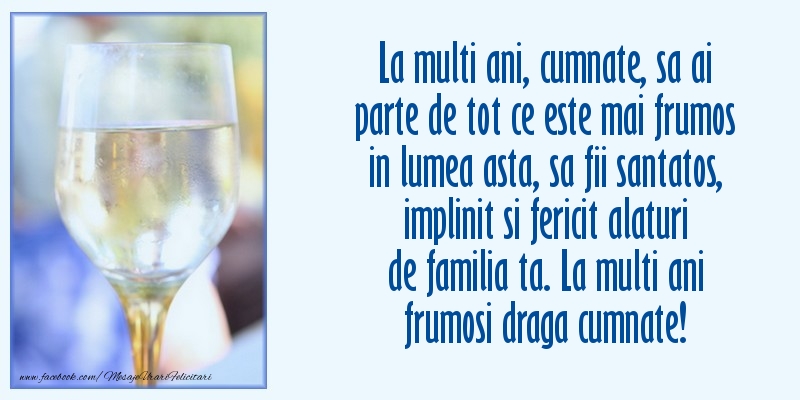 La multi ani, cumnate, sa ai parte de tot ce este mai frumos in lumea asta, sa fii santatos, implinit si fericit alaturi de familia ta. La multi ani frumosi draga cumnate!