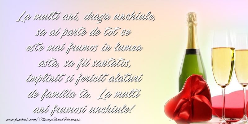 La multi ani, draga unchiule, sa ai parte de tot ce este mai frumos in lumea asta, sa fii santatos, implinit si fericit alaturi de familia ta. La multi ani frumosi unchiule!