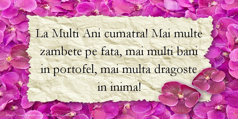 La Multi Ani cumatra! Mai multe zambete pe fata, mai multi bani in portofel, mai multa dragoste in inima!