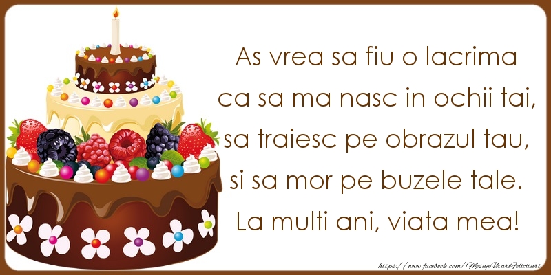 As vrea sa fiu o lacrima ca sa ma nasc in ochii tai, sa traiesc pe obrazul tau, si sa mor pe buzele tale. La multi ani, viata mea!