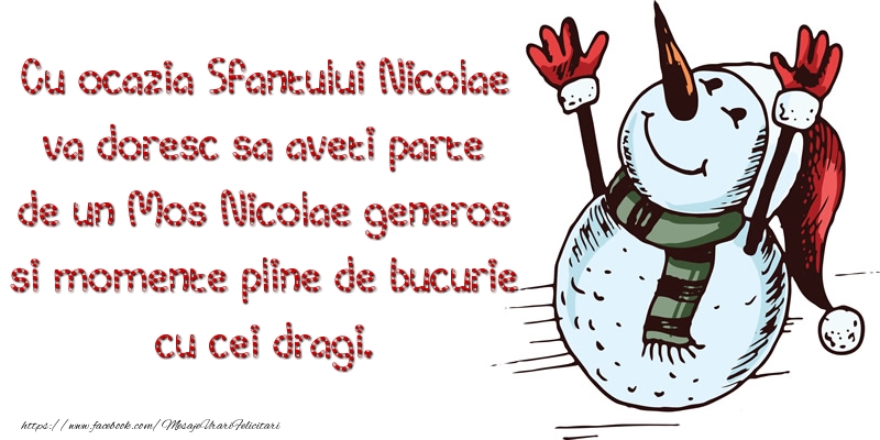 Cu ocazia Sfantului Nicolae va doresc sa aveti parte de un Mos Nicolae generos si momente pline de bucurie cu cei dragi.