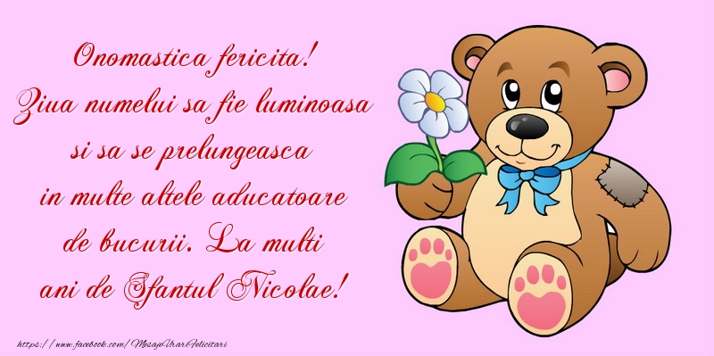 Onomastica fericita! Ziua numelui sa fie luminoasa si sa se prelungeasca in multe altele aducatoare de bucurii. La multi ani de Sfantul Nicolae!