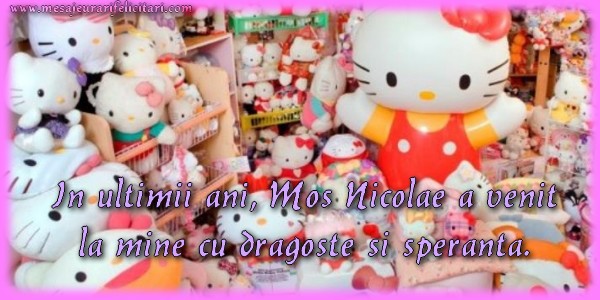 In ultimii ani, Mos Nicolae a venit la mine cu dragoste si speranta. El stie ca nu sufar daca nu vine incarcat cu daruri pentru cizmulitele mele. Sunt norocos doar sa stiu ca el exista si ca ii face pe apropiatii mei fericiti. Tu esti unul dintre ei? L-am trimis aseara pe mos la tine, sa-ti sufle in ureche fericirea!