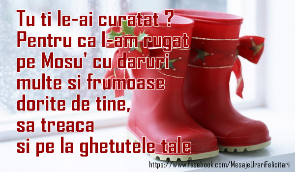 Tu ti le-ai curatat ? Pentru ca l-am rugat pe Mosu' cu daruri multe si frumoase dorite de tine, sa treaca si pe la ghetutele tale