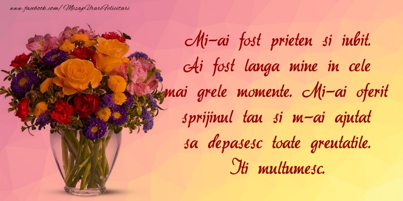 Mi-ai fost prieten si iubit. Ai fost langa mine in cele mai grele momente. Mi-ai oferit sprijinul tau si m-ai ajutat sa depasesc toate greutatile. Iti multumesc.