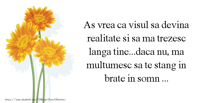 As vrea ca visul sa devina realitate si sa ma trezesc langa tine...daca nu, ma multumesc sa te stang in brate in somn ...