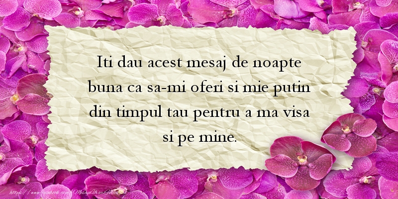 Iti dau acest mesaj de noapte buna ca sa-mi oferi si mie putin din timpul tau pentru a ma visa si pe mine.