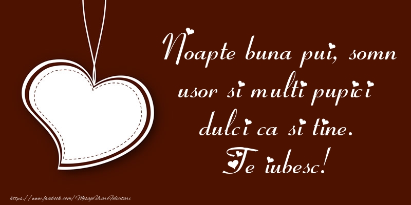 Noapte buna pui, somn usor si multi pupici dulci ca si tine. Te iubesc!