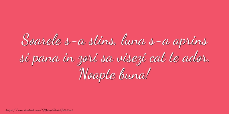 Soarele s-a stins, luna s-a aprins si pana in zori sa visezi cat te ador. Noapte buna!