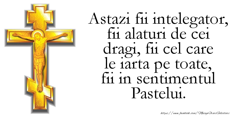 Astazi fii intelegator, fii alaturi de cei dragi, fii cel care le iarta pe toate, fii in sentimentul Pastelui.