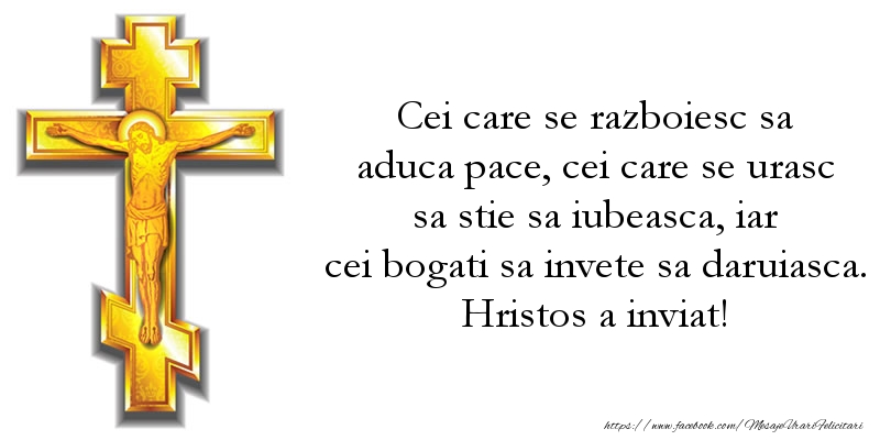 Cei care se razboiesc sa aduca pace, cei care se urasc sa stie sa iubeasca, iar cei bogati sa invete sa daruiasca. Hristos a inviat!