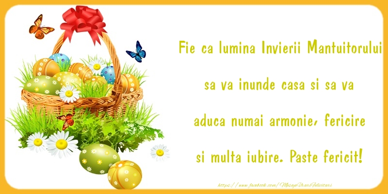 Fie ca lumina Invierii Mantuitorului sa va inunde casa si sa va aduca numai armonie, fericire si multa iubire. Paste fericit!