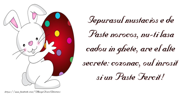 Iepurasul mustacios e de Paste norocos, nu-ti lasa cadou in ghete, are el alte secrete: cozonac, oul inrosit si un Paste Fercit!