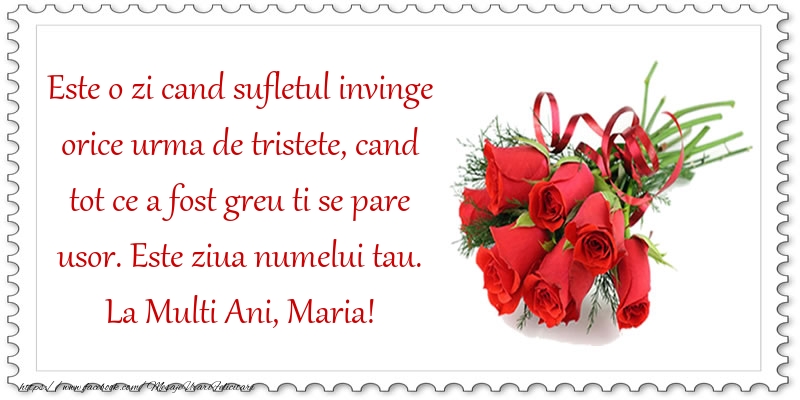 Este o zi cand sufletul invinge orice urma de tristete, cand tot ce a fost greu ti se pare usor. Este ziua numelui tau. La Multi Ani, Maria!