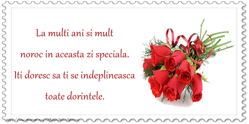 La multi ani si mult noroc in aceasta zi speciala. Iti doresc sa ti se indeplineasca toate dorintele.