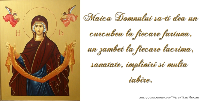 Maica Domnului sa-ti dea un curcubeu la fiecare furtuna, un zambet la fiecare lacrima, sanatate, impliniri si multa iubire.