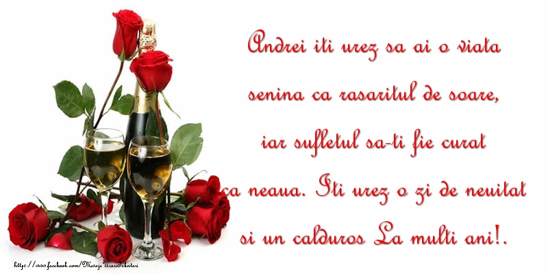 Andrei iti urez sa ai o viata senina ca rasaritul de soare, iar sufletul sa-ti fie curat ca neaua. Iti urez o zi de neuitat si un calduros La multi ani!.