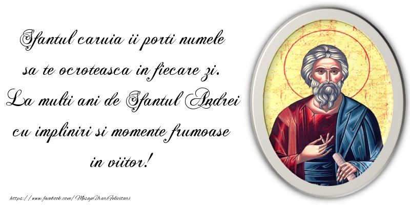 Sfantul caruia ii porti numele sa te ocroteasca in fiecare zi. La multi ani de Sfantul Andrei cu impliniri si momente frumoase in viitor!