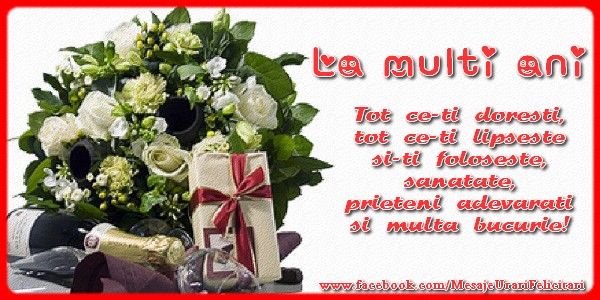 Tot ce-ti doresti, tot ce-ti lipseste si-ti foloseste, sanatate, prieteni adevarati si multa bucurie!