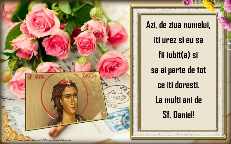Azi, de ziua numelui, iti urez si eu sa fii iubit(a) si sa ai parte de tot ce iti doresti. La multi ani de Sf. Daniel!