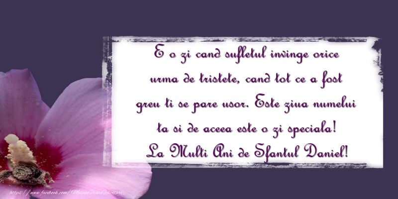 E o zi cand sufletul invinge orice urma de tristete, cand tot ce a fost greu ti se pare usor. Este ziua numelui ta si de aceea este o zi speciala! La Multi Ani de Sfantul Daniel!