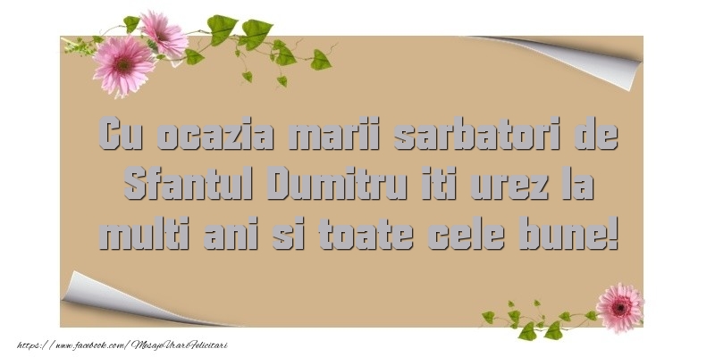 Cu ocazia marii sarbatori de Sfantul Dumitru iti urez la multi ani si toate cele bune!