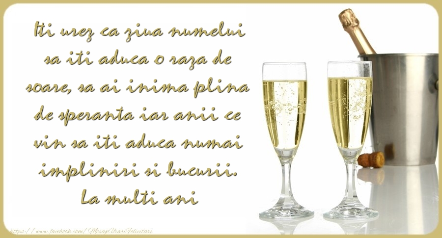 Iti urez ca ziua numelui sa iti aduca o raza de soare, sa ai inima plina de speranta iar anii ce vin sa iti aduca numai impliniri si bucurii. La multi ani